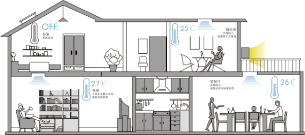 如果家庭戶型面積大,房間數(shù)量多,建議選擇多聯(lián)機一拖多的形式,可節(jié)省室外機的安裝位置,讓建筑外觀看起來更好。