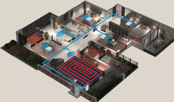 “中央空調+地暖”兩聯供的特點是一機兩用,即夏季可以作為空調冷源、冬季則可以作為地暖系統的熱源,可以達到春暖夏涼的效果,代替了傳統的“中央空調制冷+壁掛爐采暖”的家居系統模式。