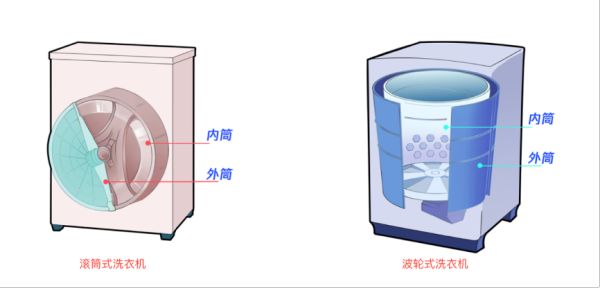 其實,無論是常用的滾筒式洗衣機還是波輪式洗衣機,一般都分為內筒和外筒。我們平時看到的很干凈的那部分是內筒的內壁,但